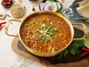 Daal Chawal Platter with Crispy baingan, Chana daal & Keri Tamatar Chutney