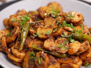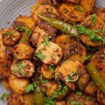 -In a serving plate, add achari arvi, garnish with fresh coriander & serve!