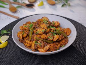 -Add water, pink salt, kashmiri red chilli powder, crushed achari spices (2-3 tbs or to taste). Mix well & cook on medium flame for 1-2 minutes. (Add 2-3 tbs water if required)