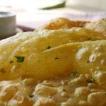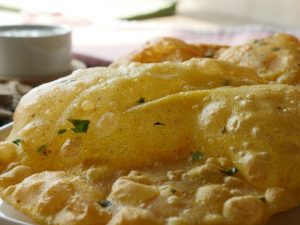 Now deep fry the puris in properly heated oil and while frying gently press them so that they may puff up.