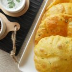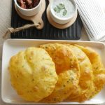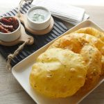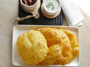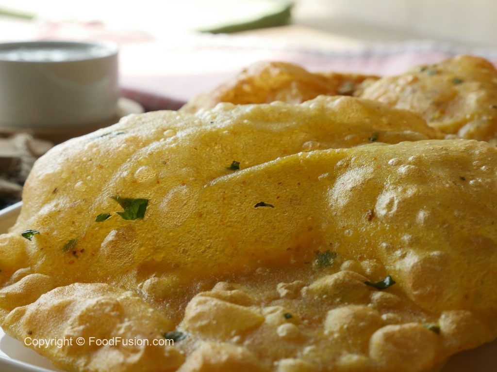 Dough balls bana len aur unko 5 minutes rest karke poori roll out kar len. Poori ko centers se thick rakhen jese wo asani se puff up hojaye.