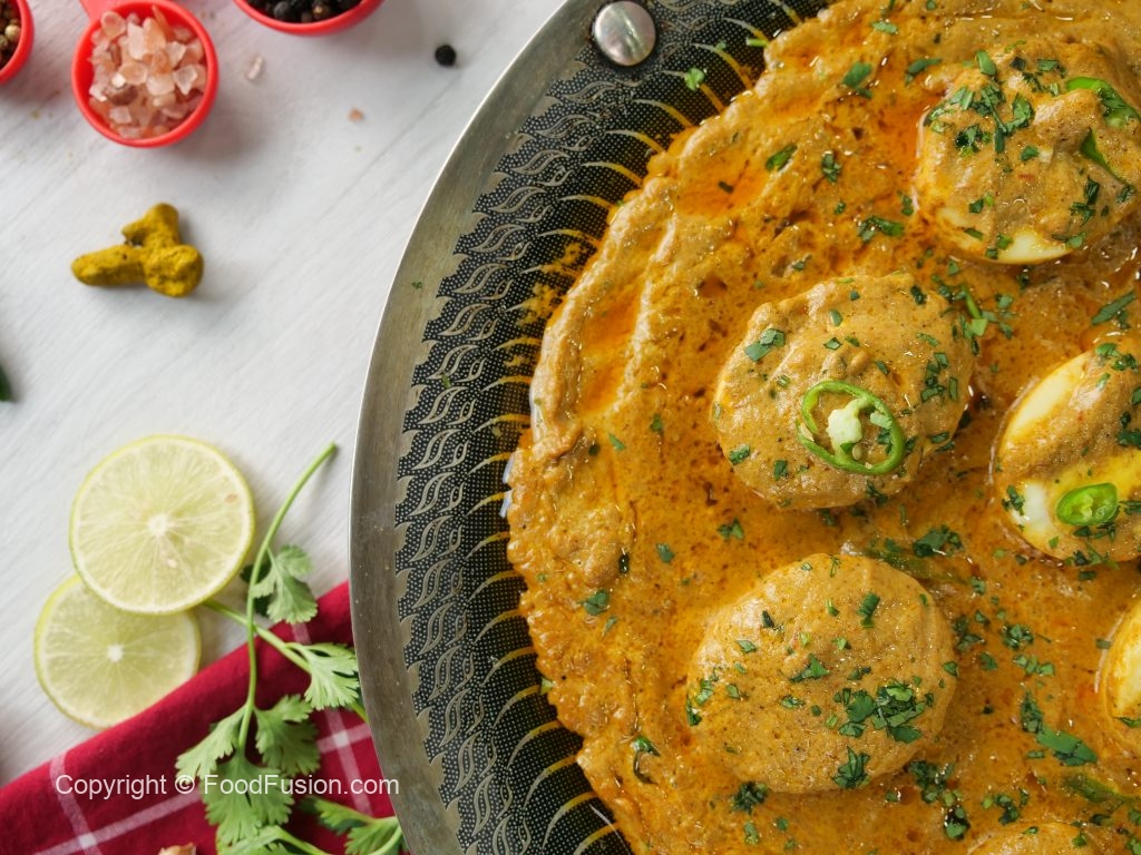 -Place halved eggs,pour gravy,sprinkle fresh coriander,green chilli,cover & cook on low flame for 1-2 minutes & serve!