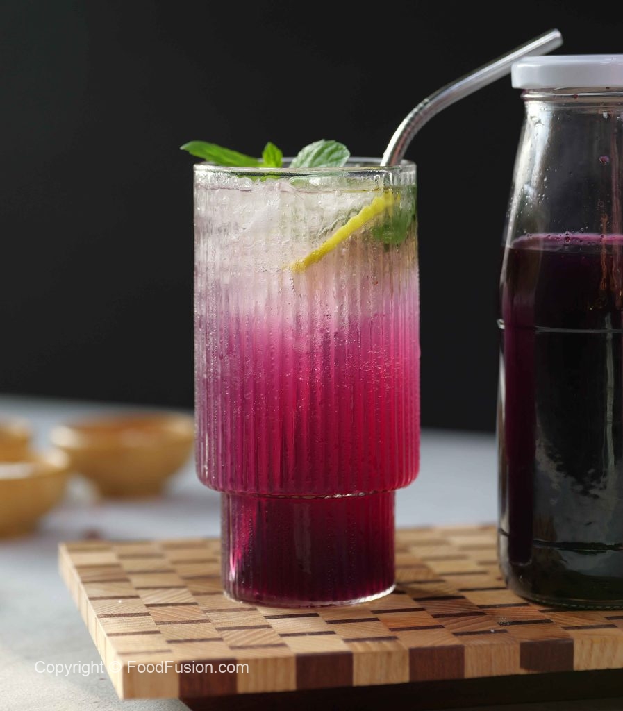 -In a serving glass,add crushed ice,lemon slices,mint leaves,prepared syrup (3-4 tbs), carbonated/sparkling water,stir & serve!