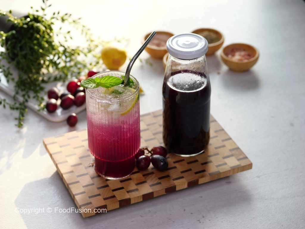 -In a saucepan,add black grapes,water,turn on the flame,bring it to boil & cook on medium flame until soft & mash slightly.