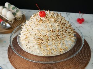 Toast the meringue with blow torch,cut into slices & serve!