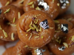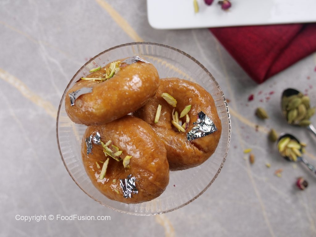 -In warm sugar syruy,add balushahi & let them soak for 30 minutes.
