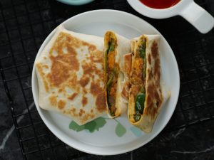 -Tawa ko cooking oil sa garam karein aur tortilla wrap rakh dein aur halki ancch per golden & crispy ho janay tak paka lein,gently press karein aur cooking oil ko brush ki madad sa laga ker flip karein aur dosri side ko golden & crispy ho janay tak paka lein (makes 8).