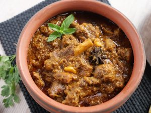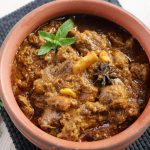 -Seal the pot & lid with rolled dough & cook on low flame for 1 hour & 30 minutes or until meat is tender then cook on high flame for a minute.