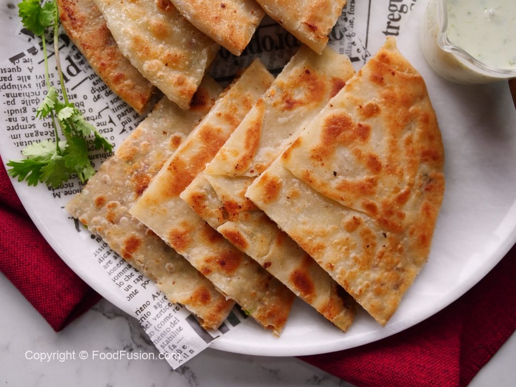 -Heat griddle,place paratha,add clarified butter & fry from both sides until golden brown (makes 6).