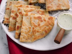 -Cut into pieces & serve with raita!