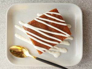 -On a clean cutting board, cut plain sponge cake in cubes.