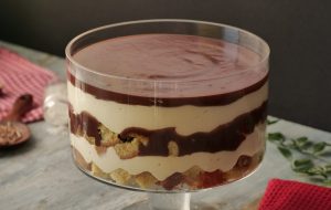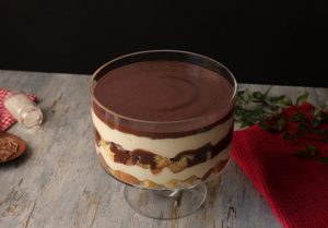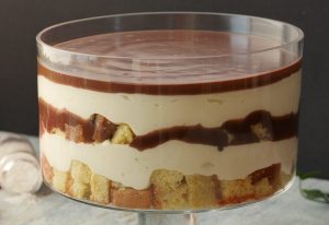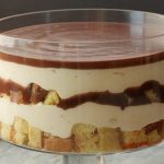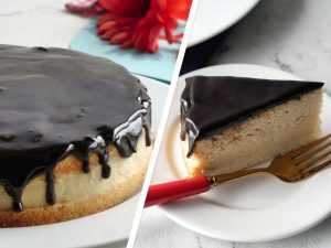 -In a serving dish, add sponge cake layer, prepared boston cream, sponge cake layer, prepared chocolate ganache, prepared boston cream then topped with prepared chocolate ganache & refrigerate until chilled!