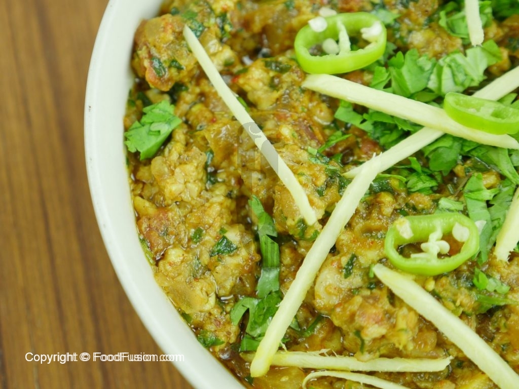 In a pan, heat oil and add onions and fry them until brown and add tomatoes and fry until they are soft. Add spices and mix well. You can add 1-2 teaspoon of water in between to avoid burning of spices. Add brain and fry them for 7-8 minutes until oil separates. Add chopped chilies, ginger and coriander for garnish.