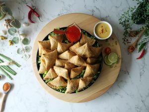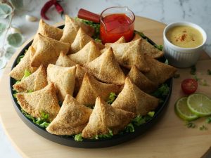 -Air fryer basket mein bread samosa rakh dein,non stick spray ko samosa ka dono sides per spray karein aur 160C per 12 minutes kliya air fry ker lein.