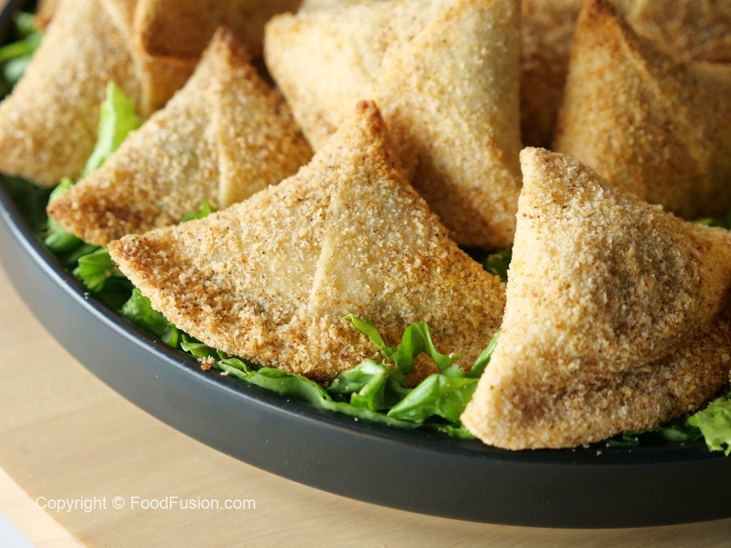 -Ab bread samosa ko pani mein dip karein aur breadcrumbs mein coat ker lein.