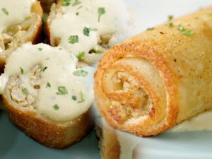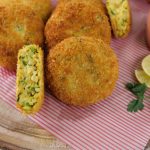 -Coat with all-purpose flour then dip into whisked eggs & coat with breadcrumbs.