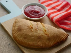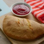 Baking dish per tayyar calzone rakh ker oil sa grease ker lein aur knife ki madad sa surface per marks laga lein (makes 4).