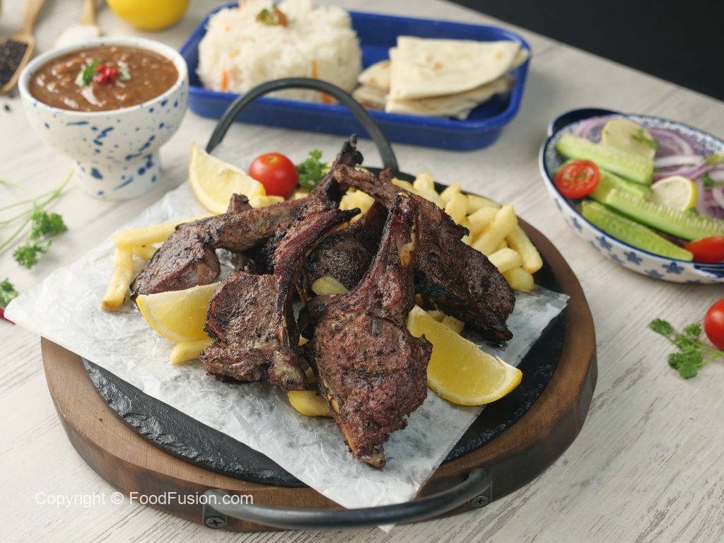 Bowl mein mutton chops,namak,kali mirch powder,zeera powder,adrak lehsan paste aur kacha papita paste dal ker ache tarhan mix karein aur dhak ker 4-6 hours klliya refrigerator mein marinate ker lein.