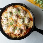 Add prepared meatballs with sauce,add cheddar cheese,mozzarella cheese & red chilli crushed,cover & cook on low flame until cheese melts (4-5 minutes).