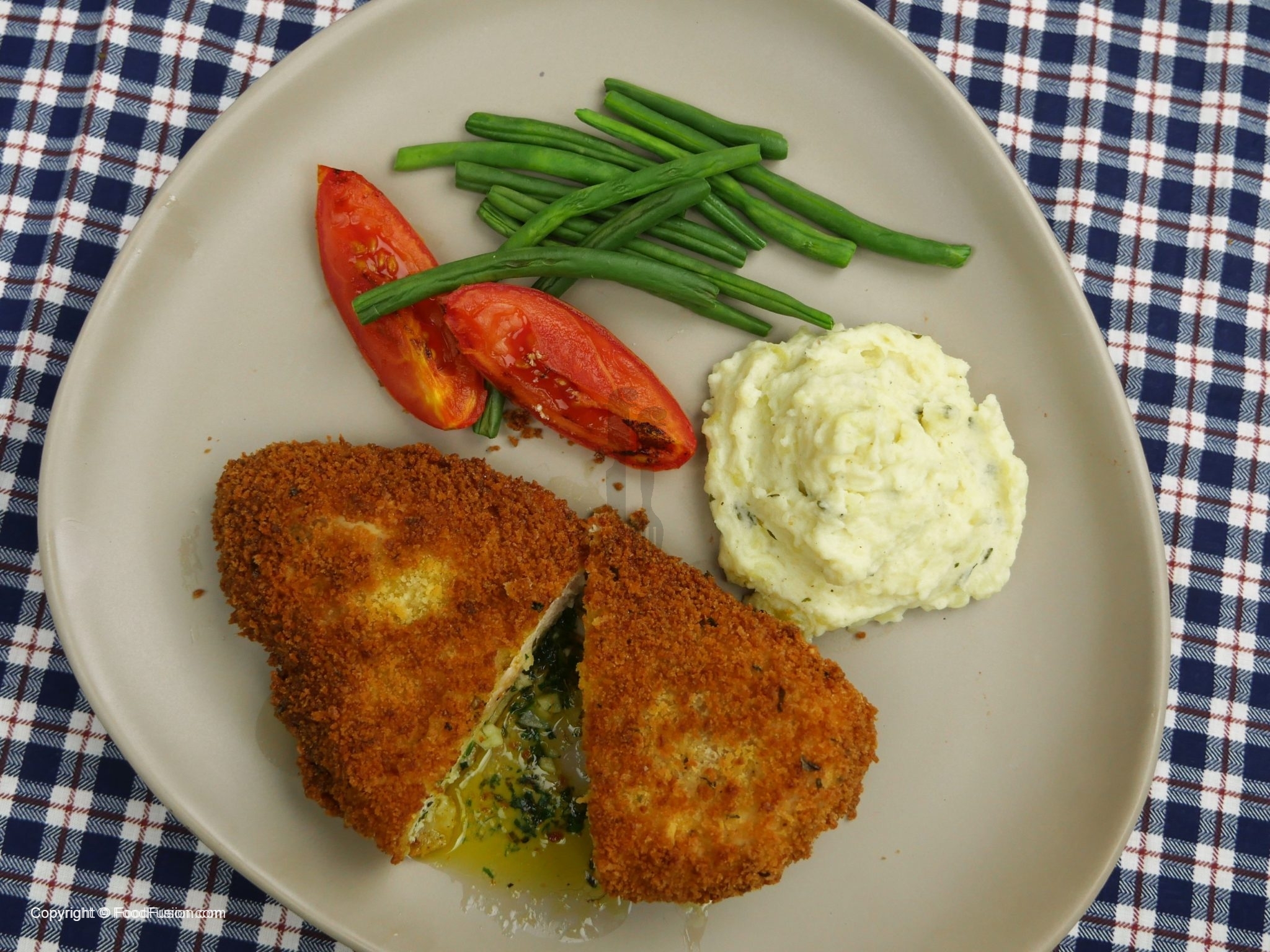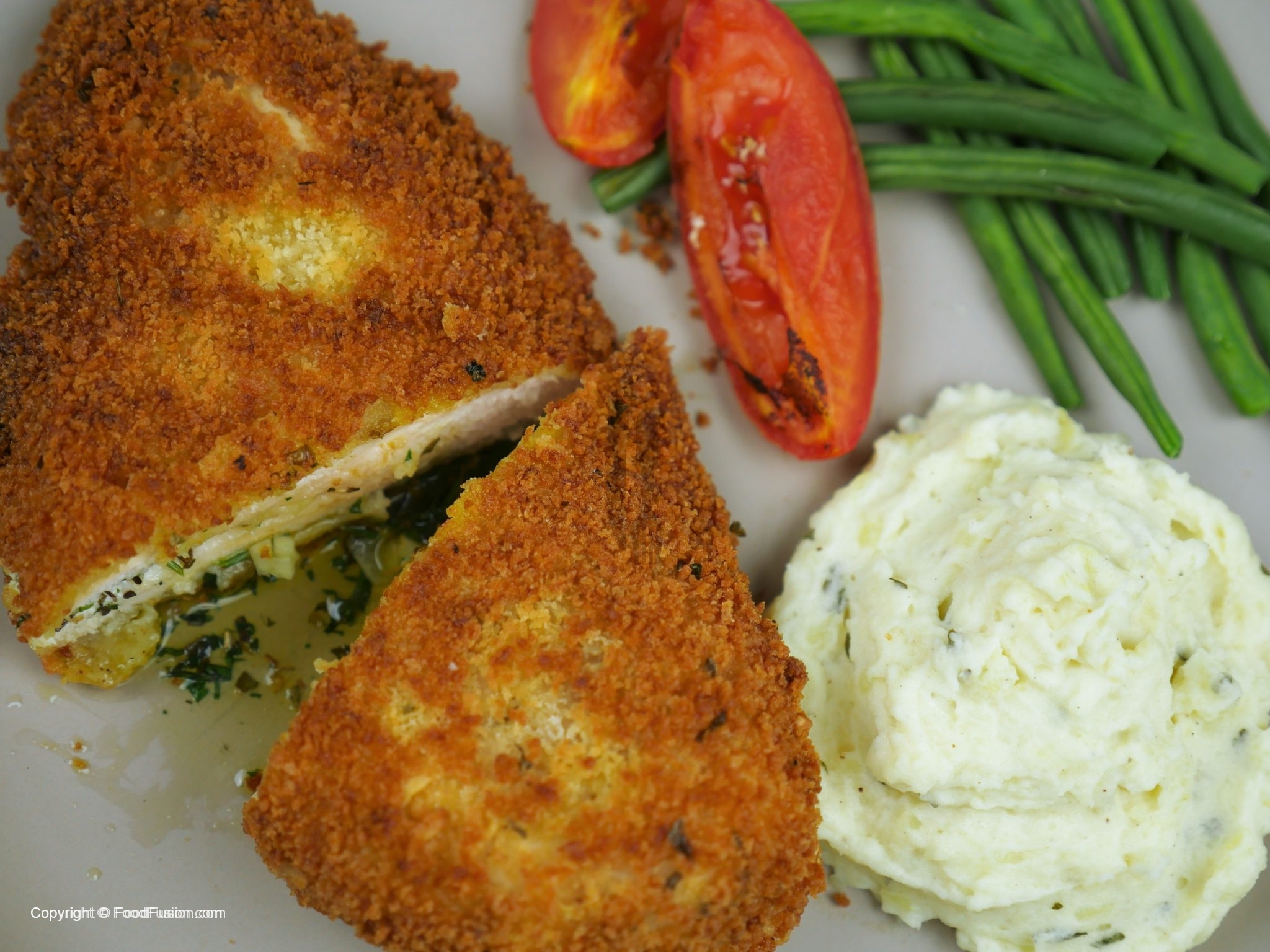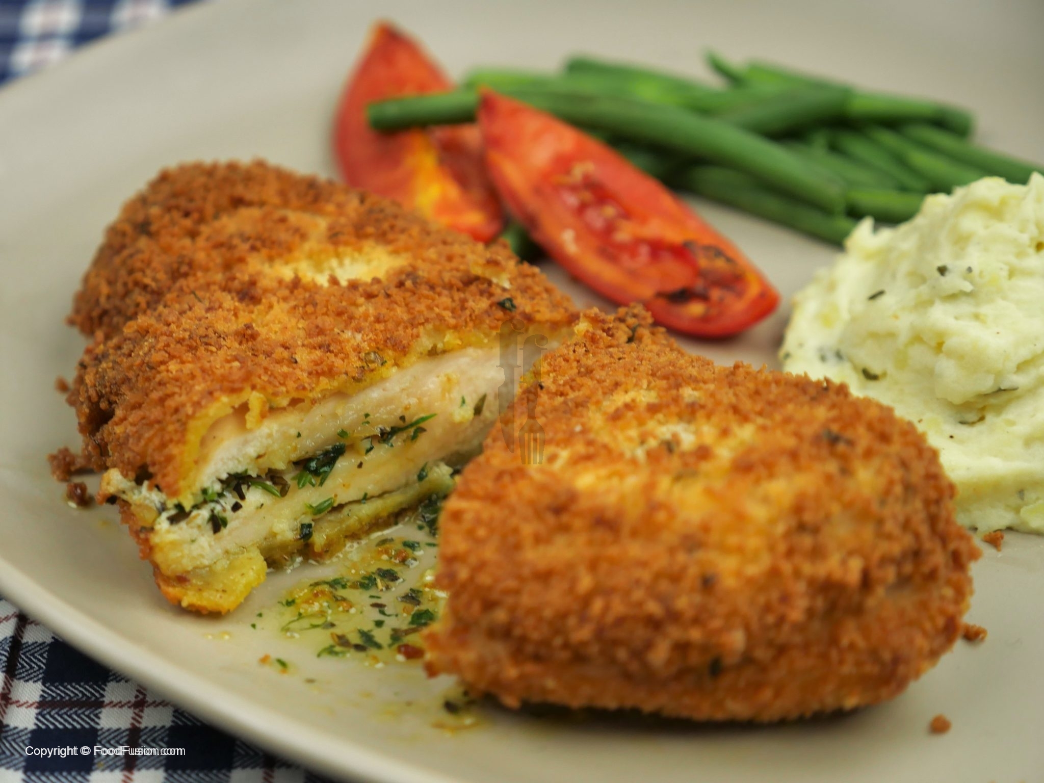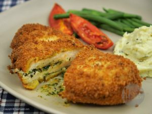 Coat the chicken fillets well with the seasoned flour, dip the floured chicken in the egg mixture and then roll in the bread crumbs. Repeat the process and again refrigerate for 20 minutes.
