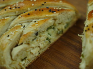 Put dough in a baking tray, apply egg-wash,sprinkle nigella and sesame seeds then bake in a preheated oven at 180 C for about 20-25 minutes.