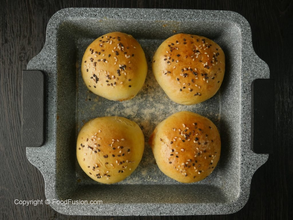 On baking tray,spinkle flour and place prepared buns (makes 8-10).