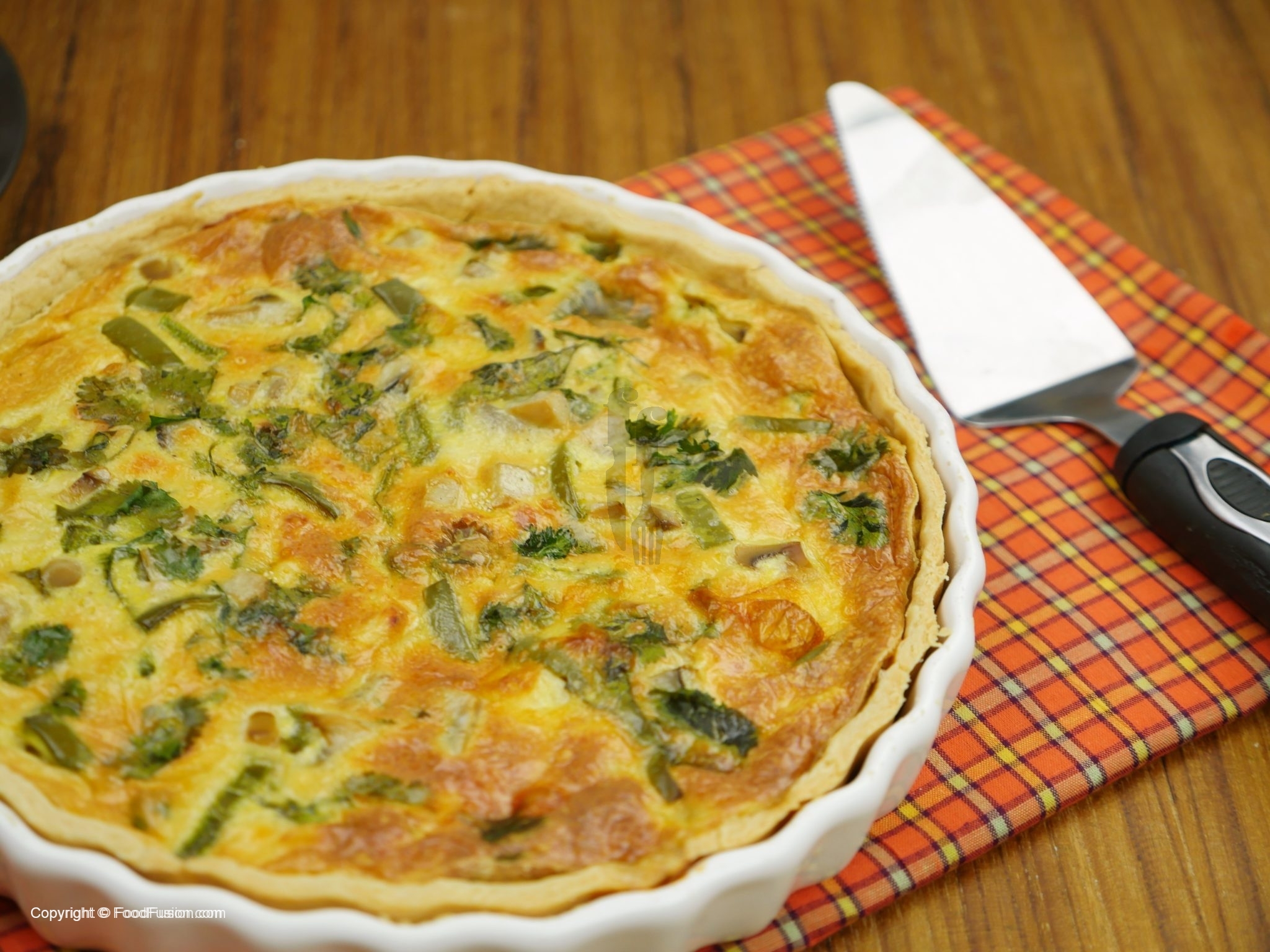Egg mixture ko pour karein,preheated oven mein 180 C per crust golden brown hunay tak bake ker lein.