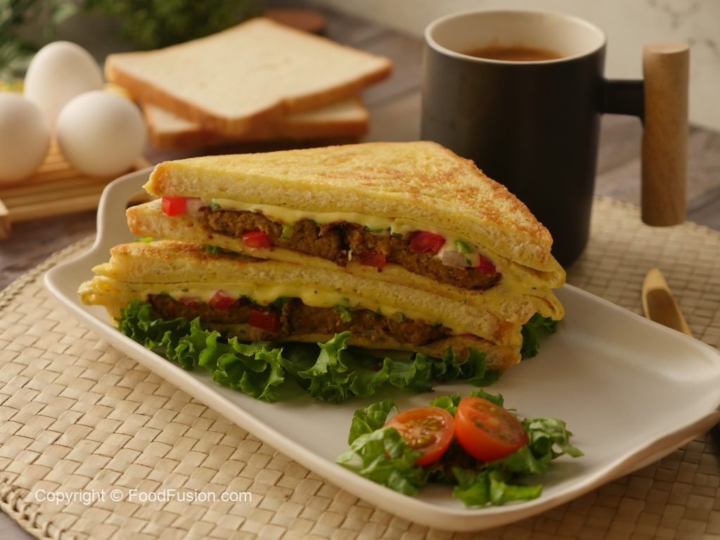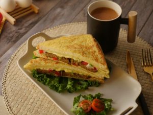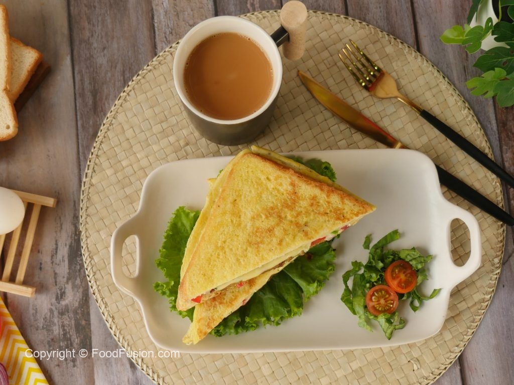 Pyaz,tamatar,hari mirch,hara dhania aur cheese slices dal dein aur bread slice ko flip ker lein aur halki ancch per cheese melt hunay tak paka lein.