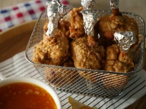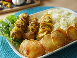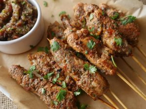 Thread chicken cubes into skewers or tooth pick.