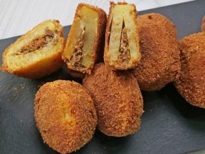 -In another flat bottom pan, add prepared bread crumbs, coat prepared bread sandwich.