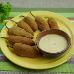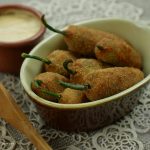 With the help of spoon coat each chili with flour than dip it in egg and then breadcrumbs, repeat the step.