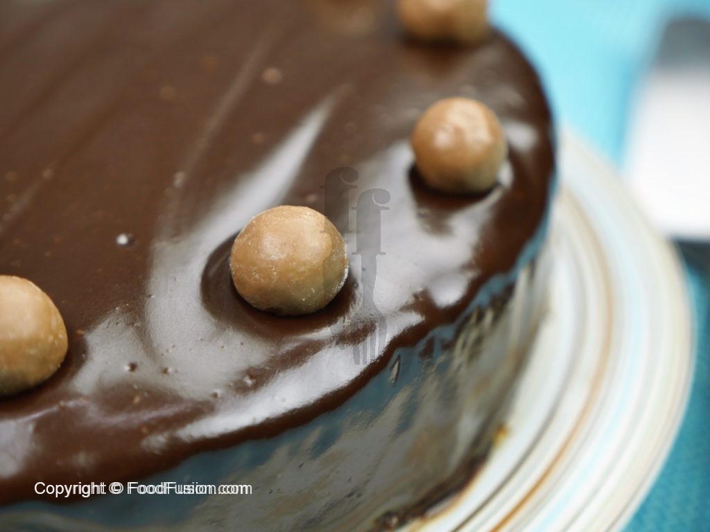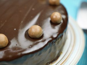 When cake is cool, apply chocolate ganache.