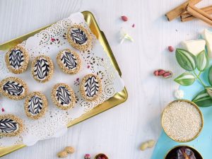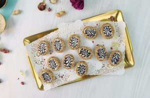 -Fill the cavity of dates bites with melted white chocolate & decorate with melted chocolate.