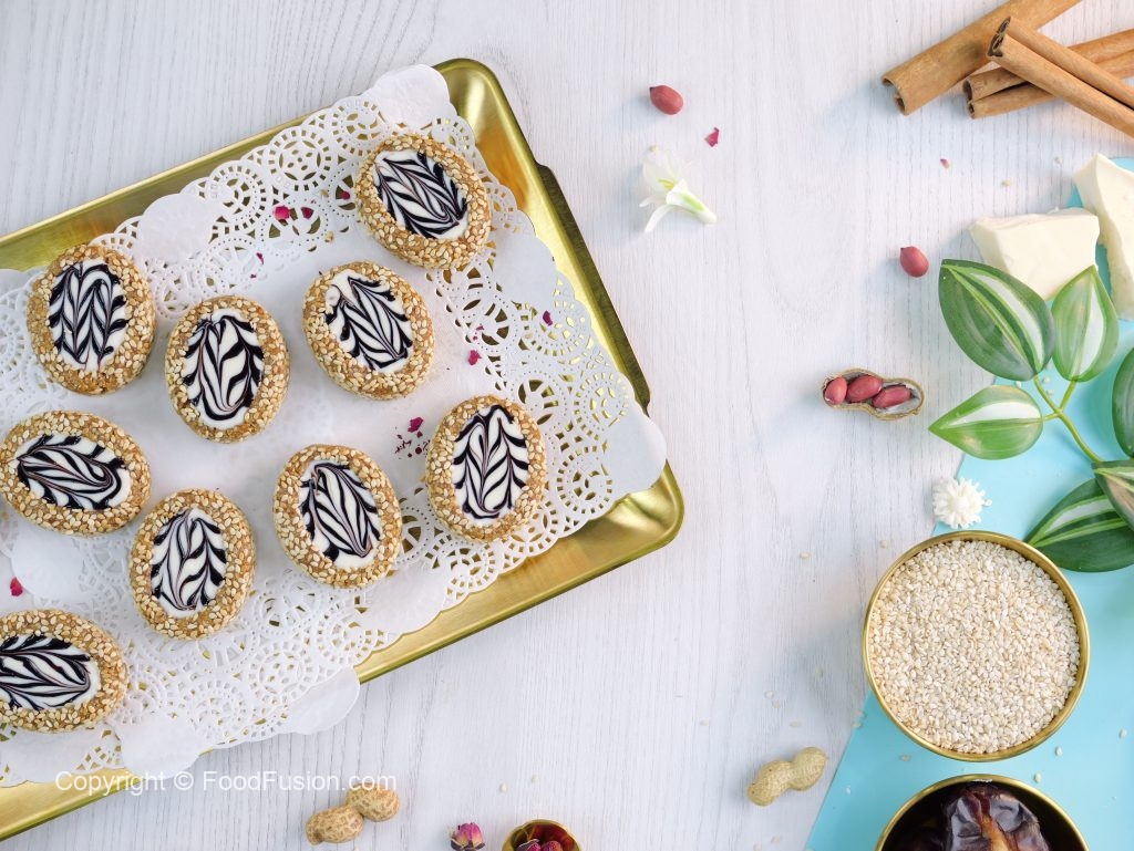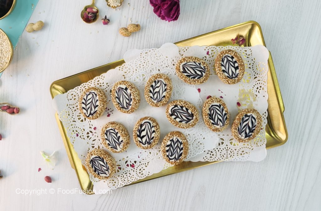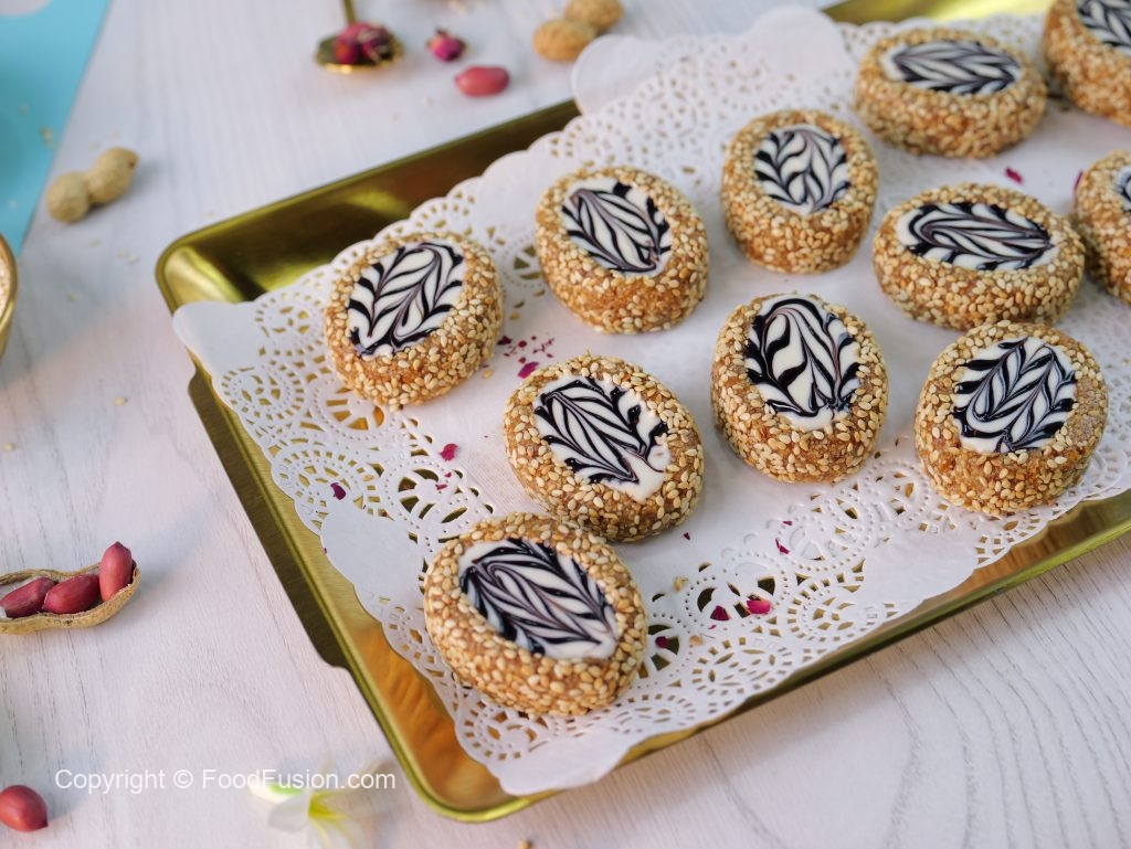 -In a frying pan,add sesame seeds & dry roast until fragrant & golden (2-3 minutes) & set aside.
