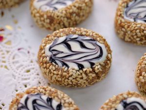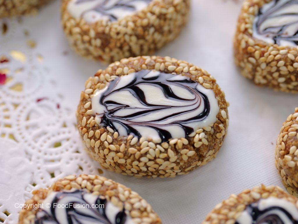 -Take a small quantity of mixture (30g),make a ball & coat with roasted sesame seeds.