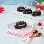 -Pipe out the chocolate mocha mousse in oval shape silicone cake mold,spread evenly & place a thin layer of sponge cake,press gently & freeze for 6 hours or overnight in freezer.