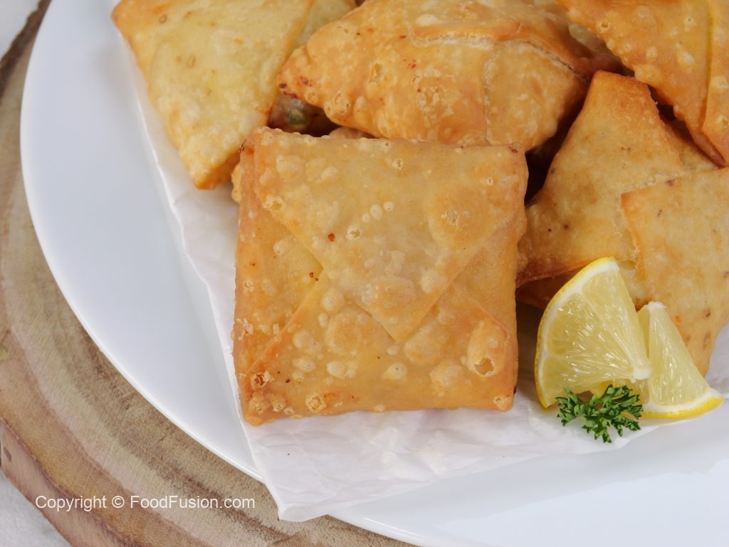 -In a wok,heat cooking oil & fry samosa on low flame until golden & crispy.