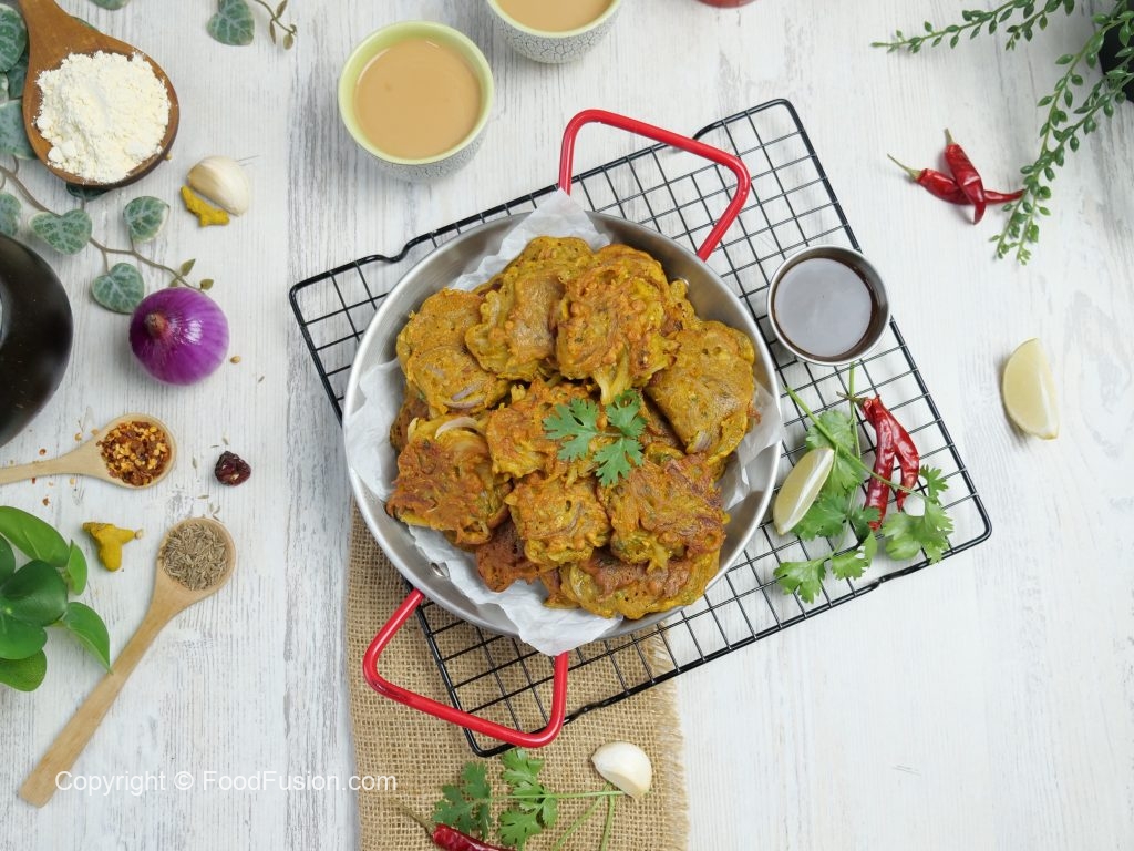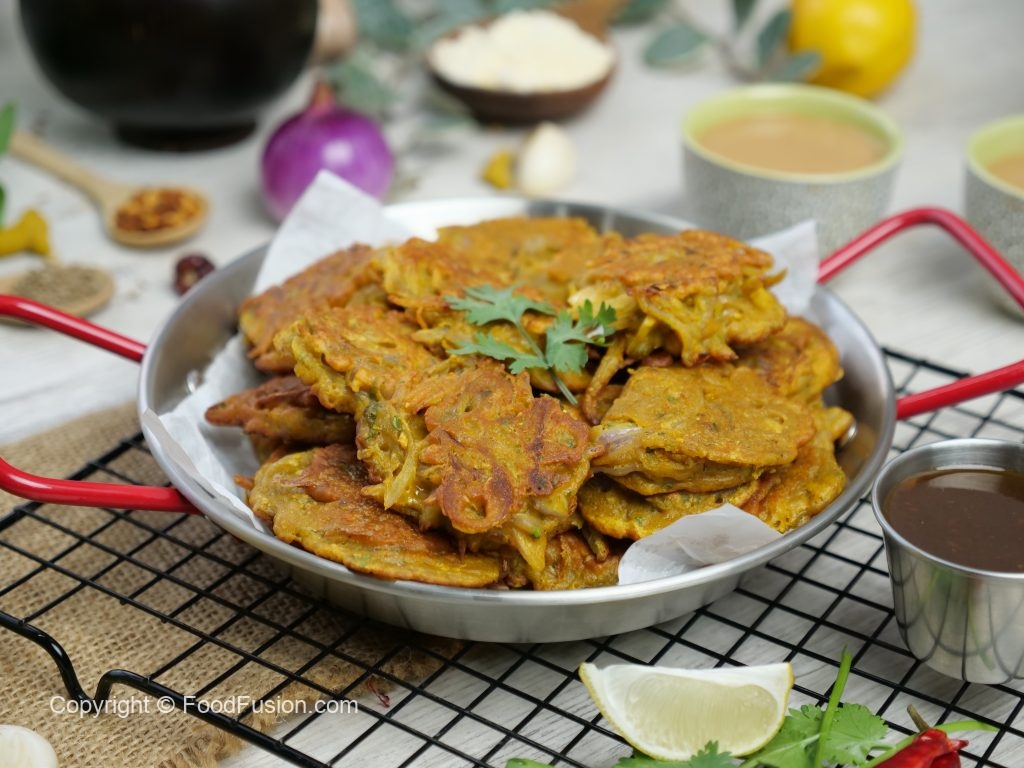 -On a griddle,add cooking oil,onion pakora batter & tawa fry on medium low flame from both sides until golden brown & crispy.