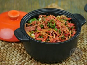 -Add dried red chilies,garlic,mustard seeds,curry leaves & mix well.