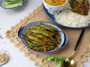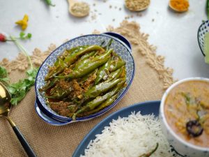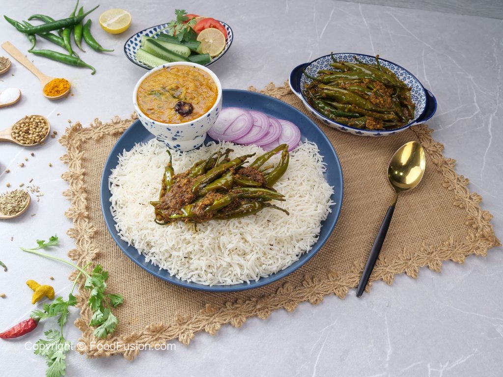 -Hari mirch ko center mein sa cut ker ka deseed ker lein & side per rakh dein.