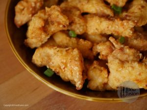 Add corn flour,sesame seeds,red chili crushed,chicken powder,salt and mix.