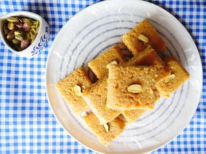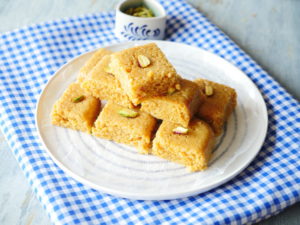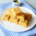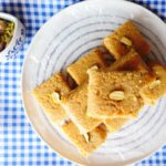 Cut into desired shapes,garnish with pistachios & serve.