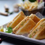 -Cast iron frying pan heat karein, sandwich (upside down) rakh kar dusri side par bhi melted butter brush karein,dono sides se golden & crispy ho janay tak grill ker lein (makes 6).