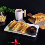 -Heat cast iron frying pan,place sandwich (upside down),apply melted butter on another side & grill from both sides until golden & crispy (makes 6).