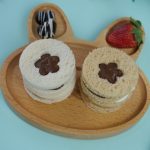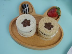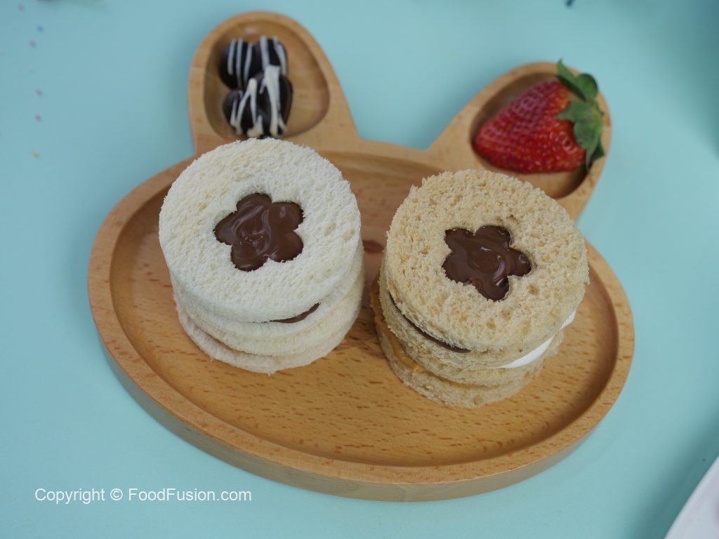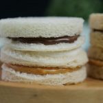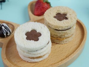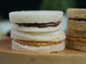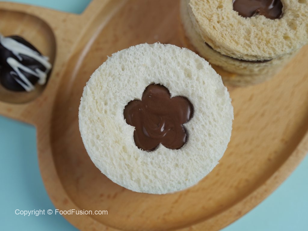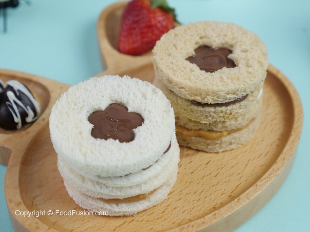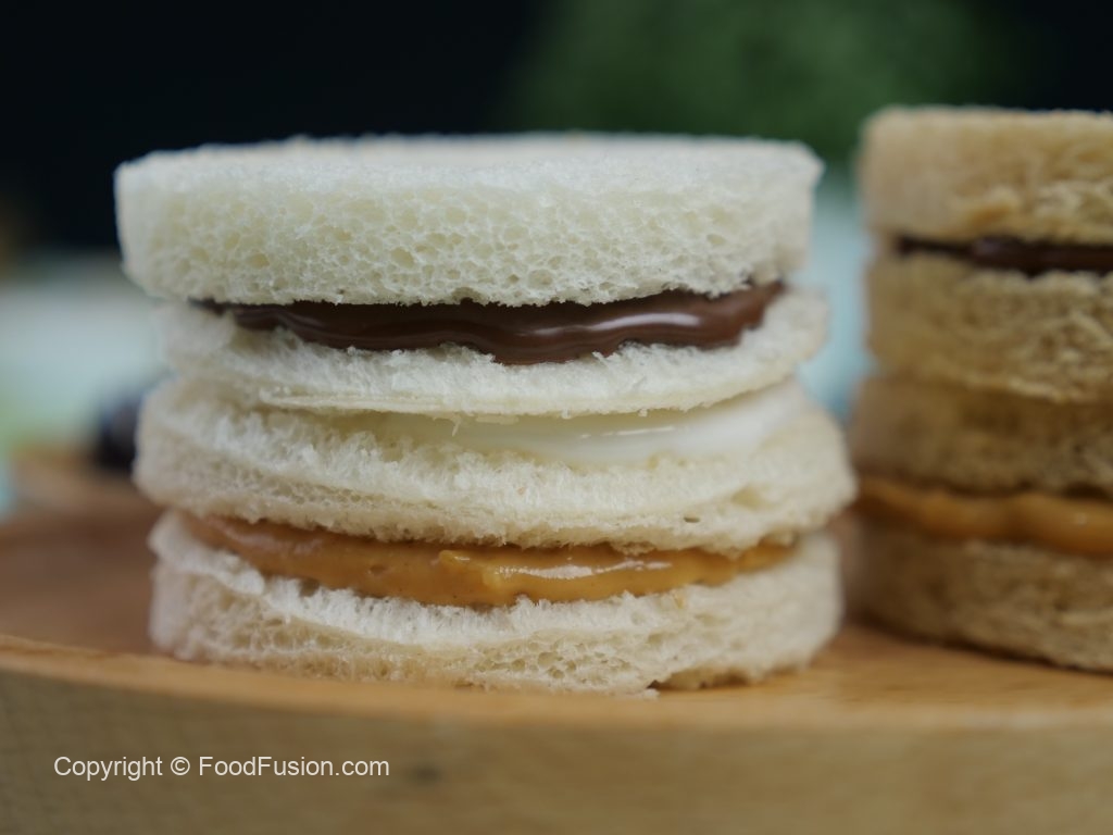 -Bread slice per chunky peanut butter dal ker pheela lein,dosra bread slice rakh ker marshmallow fluff dal ker pheela lein,ek aur bread slice rakh dein phir Nutella dal ker pheela lein,top bread slice rakh ker sandwich tayyar ker lein (makes 2-3 sandwiches).