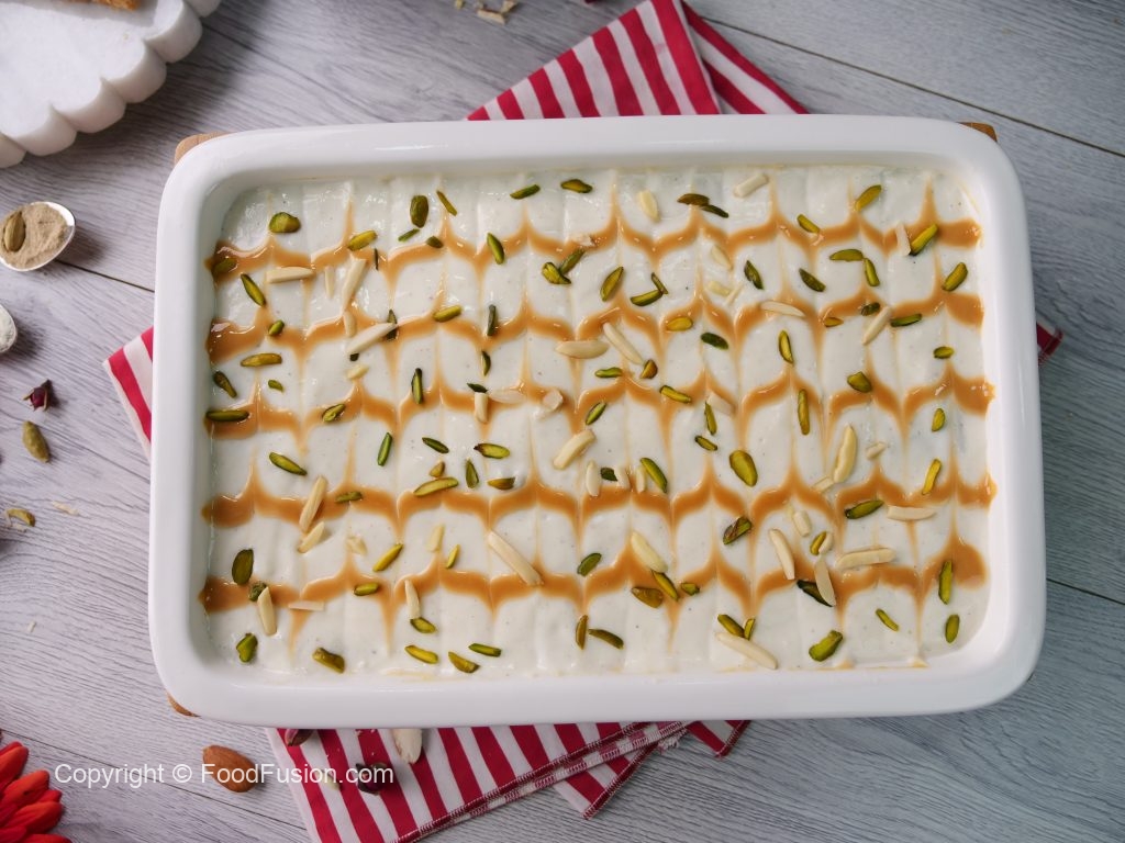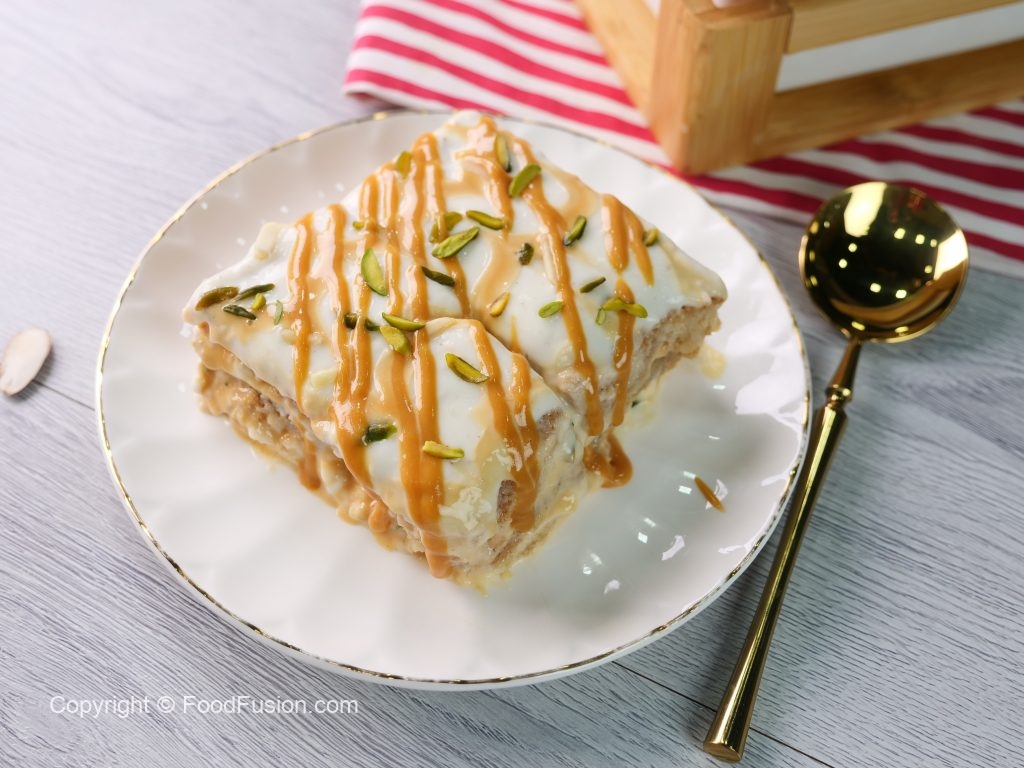 A delectable dessert made from fried bread slices infused in a thick and sweetened gravy made with the goodness of Olper’s Dairy Cream, this Shahi Tukray Lasagna is the perfect dessert for your Eid spread. #OlpersDairyCream #GoodnessBarhao #FoodFusion #HappyCookingToYou #DigitalAmmi #Shahitukra #DessertLasagna