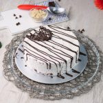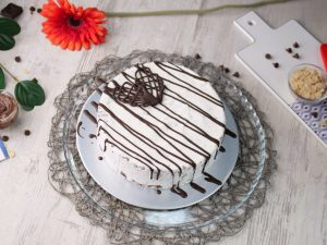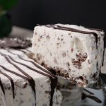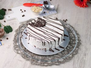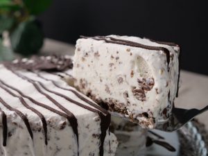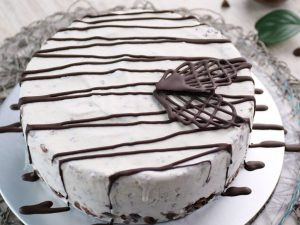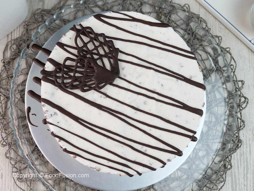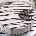 -Carefully remove ice cream cake from pan,garnish with melted chocolate & serve!