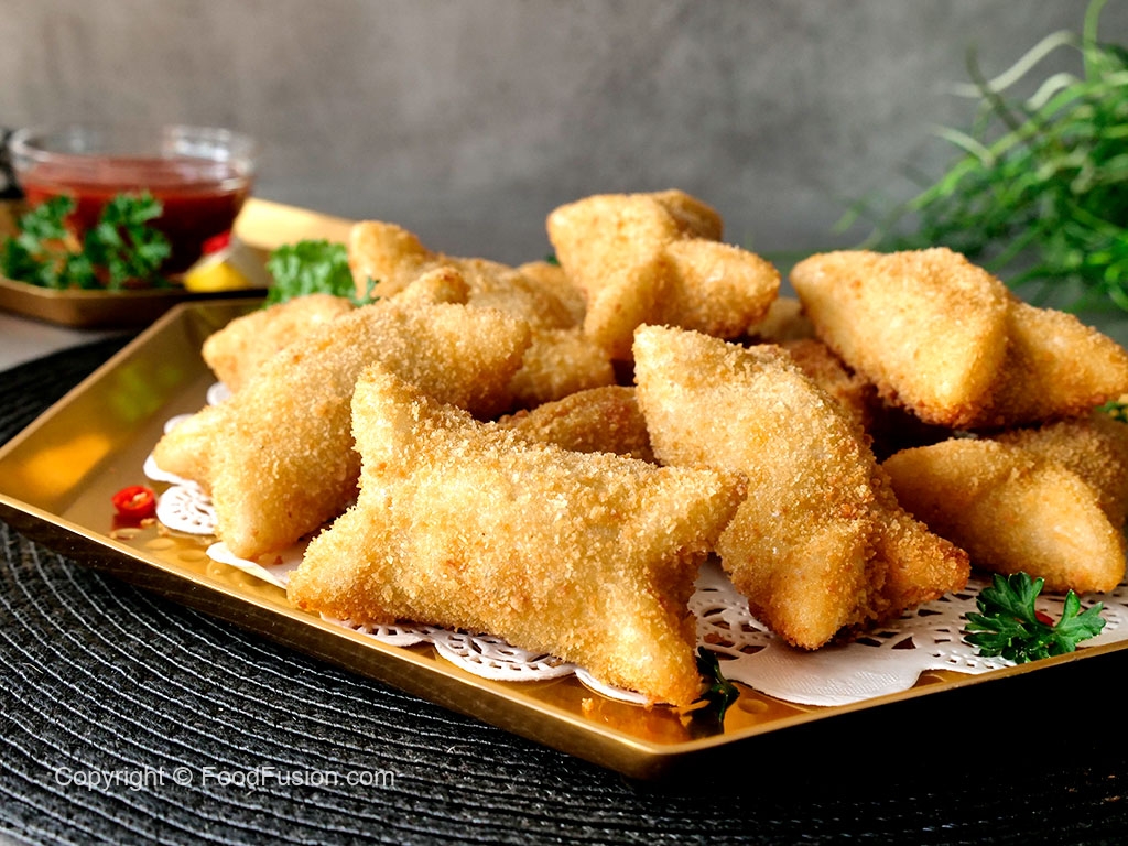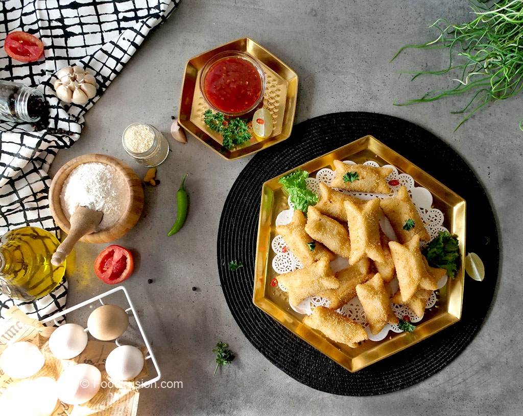 Add prepared chicken curry filling in the center,apply water on the edges,stick two opposite sides together then stick the remaining two sides and seal properly (makes 25-26).