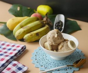 In blender,add frozen banana,peanut butter,hanged yogurt,brown sugar and blend until smooth.