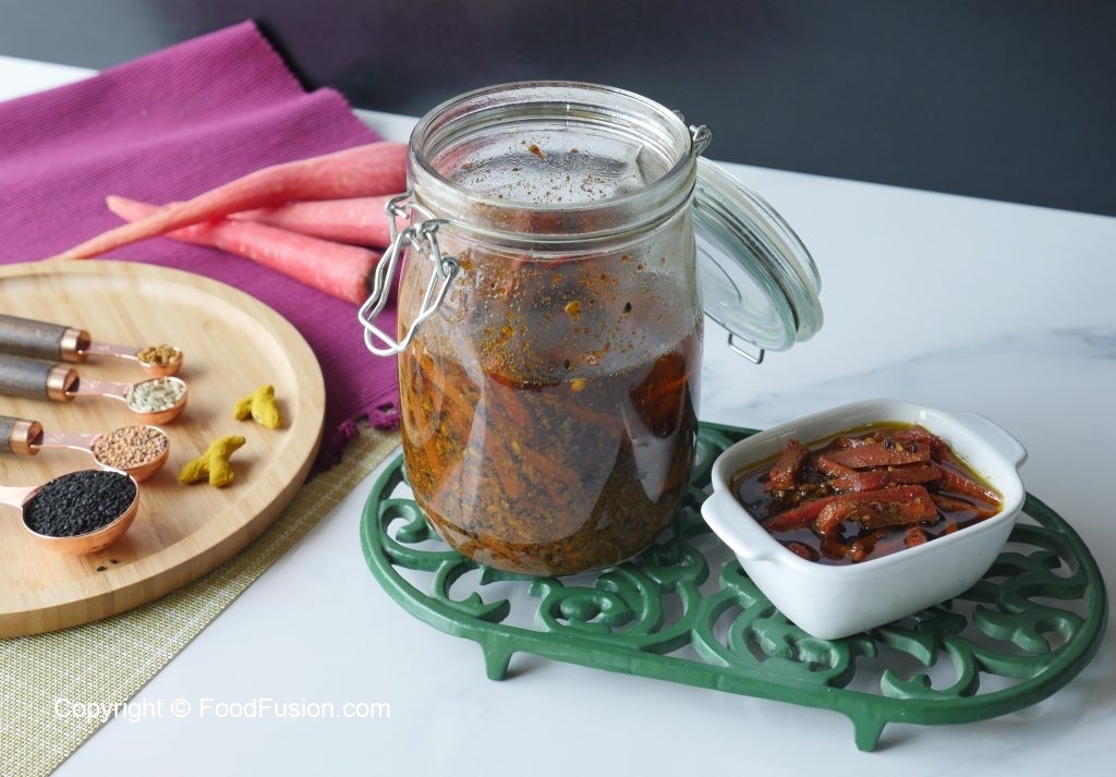 In dry & clean jar,carrot achar,cover tightly and shake well & keep it on counter for 2-3 days (warm place).